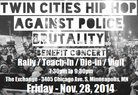 Read More: Twin Cities Hip Hop Against Police Brutality Benefit Concert & Vigil and Die-InFacebook Event Page: https://www.facebook.com/events/421859781299124/?notif_t=plan_user_joined Twin Cities Hip Hop Against Police Brutality Concert 7:30pm to 9:30pm 2nd floor of the Exchange 3405 Chicago Ave. Minneapolis, MN And we might take over a block if a lot of people come out and rally!! DONATIONS AT THE DOOR will go to: 1. Mike Brown’s Family 2. Local Black…